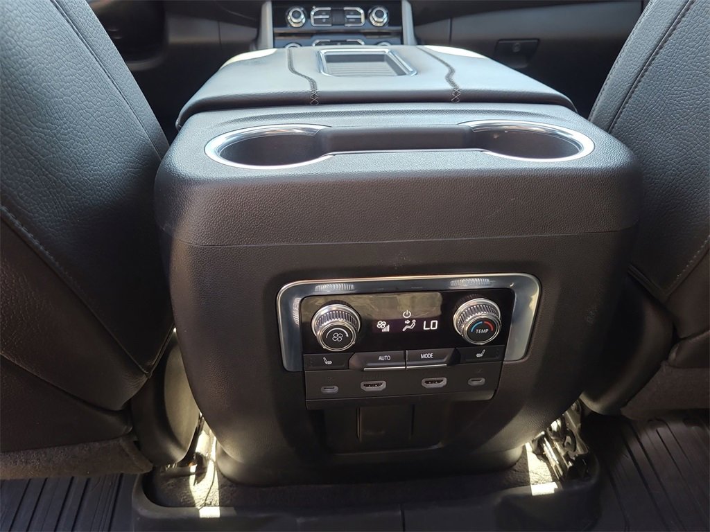 This 2023 GMC Yukon XL Denali in Onyx Black comes with the following features: EcoTec3 6.2L V8 10-Speed Automatic with Overdrive 4WD 4WD Advanced Security Package (Glass Breakage Sensor, Theft-Deterrent Alarm System, Vehicle Inclination Sensor, and Vehicle Interior Movement Sensor), Advanced Technology Package (Enhanced Automatic Parking Assist, Inside Rearview Auto-Dimming Rear Camera Mirror, Rear Camera Mirror Washer, Reverse Automatic Braking, and Super Cruise), Floor Liner Package (LPO) (1st & 2nd Rows Premium Floor Liners (LPO), 3rd Row All-Weather Floor Liners (LPO), and All-Weather Cargo Mat (LPO)), License Plate Front Mounting Package, Max Trailering Package, Premium Capability Package w/Active Response 4WD (Air Ride Adaptive Suspension and Electronic Limited Slip Differential (eLSD)), 4WD, 15 Diagonal Multi-Color Head-Up Display, 2 Presets For Outside Rearview Mirrors, 3 Years of GMC Connected Services, 3 Years of OnStar Safety & Security, 3.23 Rear Axle Ratio, 3rd Row 60/40 Power-Folding Split-Bench Seat, 3rd row seats: split-bench, 4-Wheel Disc Brakes, ABS brakes, Adaptive Cruise Control, Adaptive suspension, Air Conditioning, Alloy wheels, AM/FM radio: SiriusXM with 360L, AM/FM Stereo, Apple CarPlay/Android Auto, Auto High-beam Headlights, Auto-dimming door mirrors, Auto-dimming Rear-View mirror, Auto-leveling suspension, Automatic temperature control, Black Nameplates (LPO), Bodyside moldings, Brake assist, Bright Front & Rear Door Sill Plates, Bumpers: body-color, Chrome Door Handles w/Body-Color Strip, Compass, Delay-off headlights, Driver door bin, Driver vanity mirror, Dual Exhaust System, Dual front impact airbags, Dual front side impact airbags, Dual-Pane Panoramic Power Sunroof, Electronic Stability Control, Emergency communication system: OnStar and GMC connected services capable, Enhanced Automatic Emergency Braking, Extra Capacity Cooling System, Floor Console, Four wheel independent suspension, Front anti-roll bar, Front Bucket Seats, Front Center Armrest, Front dual zone A/C, Front fog lights, Front reading lights, Fully automatic headlights, Garage door transmitter, Hands-Free Power Programmable Rear Liftgate, HD Surround Vision, Heads-Up Display, Heated & Ventilated Driver & Front Passenger Seats, Heated 2nd Row Outboard Position Seats, Heated door mirrors, Heated Driver & Front Passenger Seats, Heated front seats, Heated rear seats, Heated Steering Wheel, Heated steering wheel, Hill Descent Control, Hitch Guidance w/Hitch View, Illuminated entry, Integrated Trailer Brake Controller, Lane Keep Assist w/Lane Departure Warning, Low tire pressure warning, Magnetic Ride Control Suspension, Memory seat, Navigation System, Occupant sensing airbag, Outside Heated Power-Adjustable Mirrors, Outside temperature display, Overhead airbag, Overhead console, Panic alarm, Passenger door bin, Passenger vanity mirror, Power door mirrors, Power driver seat, Power Liftgate, Power passenger seat, Power Release 2nd Row Bucket Seats, Power steering, Power Tilt & Telescopic Steering Column, Power windows, Power-Retractable Assist Steps, Rain sensing wipers, Rear air conditioning, Rear anti-roll bar, Rear Cross Traffic Alert, Rear Pedestrian Alert, Rear reading lights, Rear Seat Media System, Rear window defroster, Rear window wiper, Remote keyless entry, Roof rack: rails only, Safety Alert Seat, Security system, SiriusXM w/360L, Smart Trailer Integration Indicator, Speed control, Speed-sensing steering, Split folding rear seat, Spoiler, Sport Pedal Cover Kit (LPO), Steering wheel memory, Steering wheel mounted audio controls, Tachometer, Telescoping steering wheel, Tilt steering wheel, Traction control, Trailer Side Blind Zone Alert, Trip computer, Turn signal indicator mirrors, Universal Home Remote, Variably intermittent wipers, Ventilated front seats, Voltmeter, and Wireless Charging.