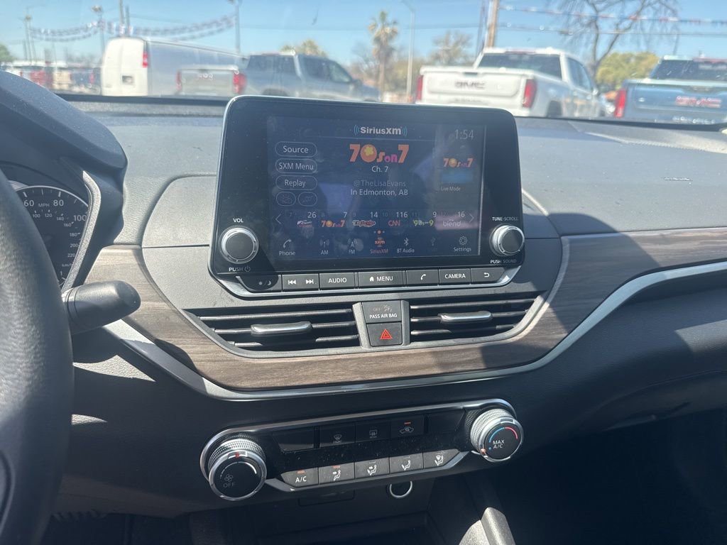 This 2025 Nissan Altima 2.5 SV in Glacier White comes with the following features: 2.5L 4-Cylinder DOHC 16V CVT with Xtronic FWD CVT with Xtronic CVT with Xtronic, 17 Machined Alloy Wheels, 4-Wheel Disc Brakes, 6 Speakers, ABS brakes, Air Conditioning, Alloy wheels, AM/FM radio: SiriusXM, Auto High-beam Headlights, Blind Spot Warning, Brake assist, Bumpers: body-color, Cloth Seat Trim, Delay-off headlights, Driver door bin, Driver vanity mirror, Dual front impact airbags, Dual front side impact airbags, Electronic Stability Control, Floor Mats/Trunk Mat/Hideaway Net, Four wheel independent suspension, Front anti-roll bar, Front Bucket Seats, Front Center Armrest, Front reading lights, Fully automatic headlights, Illuminated entry, Knee airbag, Low tire pressure warning, NissanConnect featuring Apple CarPlay and Android Auto, NissanConnect Services Powered by SiriusXM, Occupant sensing airbag, Outside temperature display, Overhead airbag, Overhead console, Panic alarm, Passenger door bin, Passenger vanity mirror, Power door mirrors, Power driver seat, Power steering, Power windows, Radio data system, Radio: AM/FM Audio System, Rear anti-roll bar, Rear Parking Sensors, Rear reading lights, Rear seat center armrest, Rear side impact airbag, Rear window defroster, Remote keyless entry, Security system, Speed control, Speed-sensing steering, Speed-Sensitive Wipers, Split folding rear seat, Steering wheel mounted audio controls, Tachometer, Telescoping steering wheel, Tilt steering wheel, Traction control, Trip computer, and Variably intermittent wipers.