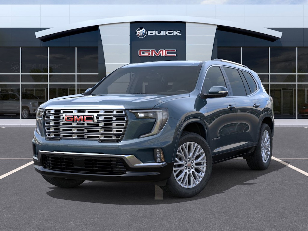This 2026 GMC Acadia Denali in Downpour Metallic comes with the following features: 2.5L DOHC 8-Speed Automatic FWD FWD and Sheer/Very Dark Atmosphere Leather Memory Package, Preferred Equipment Group 5SA, Super Cruise Package (3 Years of OnStar One, Driver Attention Assist, Enhanced Automatic Parking Assist, and Super Cruise), FWD, Sheer/Very Dark Atmosphere Leather, 12 Speakers, 3.49 Final Drive Axle Ratio, 3rd Row 60/40 Power Split-Folding Bench, 3rd row seats: split-bench, 4-Wheel Disc Brakes, 6-Way Power Front Passenger Seat Adjuster, 7-Passenger Seating (2-2-3 Seating Configuration), 8-Way Power Driver Seat Adjuster, ABS brakes, Air Conditioning, Alloy wheels, AM/FM radio: SiriusXM with 360L, Apple CarPlay/Android Auto, Auto High-beam Headlights, Auto-dimming door mirrors, Auto-dimming Rear-View mirror, Automatic temperature control, Bodyside moldings, Bose Premium 12-Speaker System with Sub-Woofer, Brake assist, Bumpers: body-color, Compass, Delay-off headlights, Driver 4-Way Power Lumbar Seat Adjuster, Driver door bin, Driver vanity mirror, Dual front impact airbags, Dual front side impact airbags, Electronic Stability Control, Emergency communication system: OnStar Services capable, Exterior Parking Camera Rear, Four wheel independent suspension, Front anti-roll bar, Front Bucket Seats, Front Center Armrest, Front dual zone A/C, Front fog lights, Front License Plate Bracket, Front Passenger 4-Way Power Lumbar Seat Adjuster, Front reading lights, Fully automatic headlights, Garage door transmitter, Genuine wood console insert, Genuine wood dashboard insert, Genuine wood door panel insert, Heads-Up Display, Heated and Ventilated Driver and Front Passenger Seats, Heated door mirrors, Heated Driver and Front Passenger Seats, Heated front seats, Heated rear seats, Heated steering wheel, Illuminated entry, Leather steering wheel, Low tire pressure warning, Memory seat, Navigation System, Occupant sensing airbag, Outside temperature display, Overhead airbag, Overhead console, Panic alarm, Passenger door bin, Passenger vanity mirror, Perforated Leather-Appointed Seat Trim, Power door mirrors, Power driver seat, Power Liftgate, Power passenger seat, Power steering, Power windows, Radio data system, Radio: 15 Diagonal Premium GMC Infotainment System, Rain sensing wipers, Rear air conditioning, Rear anti-roll bar, Rear reading lights, Rear side impact airbag, Rear window defroster, Rear window wiper, Remote keyless entry, Security system, SiriusXM with 360L, Speed control, Speed-sensing steering, Split folding rear seat, Spoiler, Sport steering wheel, Steering wheel memory, Steering wheel mounted audio controls, Tachometer, Telescoping steering wheel, Tilt steering wheel, Traction control, Trip computer, Turn signal indicator mirrors, Variably intermittent wipers, Ventilated front seats, Voltmeter, and Wheels: 20 x 8 Pearl Nickel Machined Aluminum.