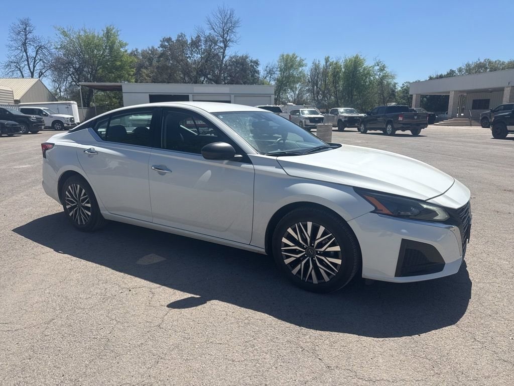 This 2025 Nissan Altima 2.5 SV in Glacier White comes with the following features: 2.5L 4-Cylinder DOHC 16V CVT with Xtronic FWD CVT with Xtronic CVT with Xtronic, 17 Machined Alloy Wheels, 4-Wheel Disc Brakes, 6 Speakers, ABS brakes, Air Conditioning, Alloy wheels, AM/FM radio: SiriusXM, Auto High-beam Headlights, Blind Spot Warning, Brake assist, Bumpers: body-color, Cloth Seat Trim, Delay-off headlights, Driver door bin, Driver vanity mirror, Dual front impact airbags, Dual front side impact airbags, Electronic Stability Control, Floor Mats/Trunk Mat/Hideaway Net, Four wheel independent suspension, Front anti-roll bar, Front Bucket Seats, Front Center Armrest, Front reading lights, Fully automatic headlights, Illuminated entry, Knee airbag, Low tire pressure warning, NissanConnect featuring Apple CarPlay and Android Auto, NissanConnect Services Powered by SiriusXM, Occupant sensing airbag, Outside temperature display, Overhead airbag, Overhead console, Panic alarm, Passenger door bin, Passenger vanity mirror, Power door mirrors, Power driver seat, Power steering, Power windows, Radio data system, Radio: AM/FM Audio System, Rear anti-roll bar, Rear Parking Sensors, Rear reading lights, Rear seat center armrest, Rear side impact airbag, Rear window defroster, Remote keyless entry, Security system, Speed control, Speed-sensing steering, Speed-Sensitive Wipers, Split folding rear seat, Steering wheel mounted audio controls, Tachometer, Telescoping steering wheel, Tilt steering wheel, Traction control, Trip computer, and Variably intermittent wipers.